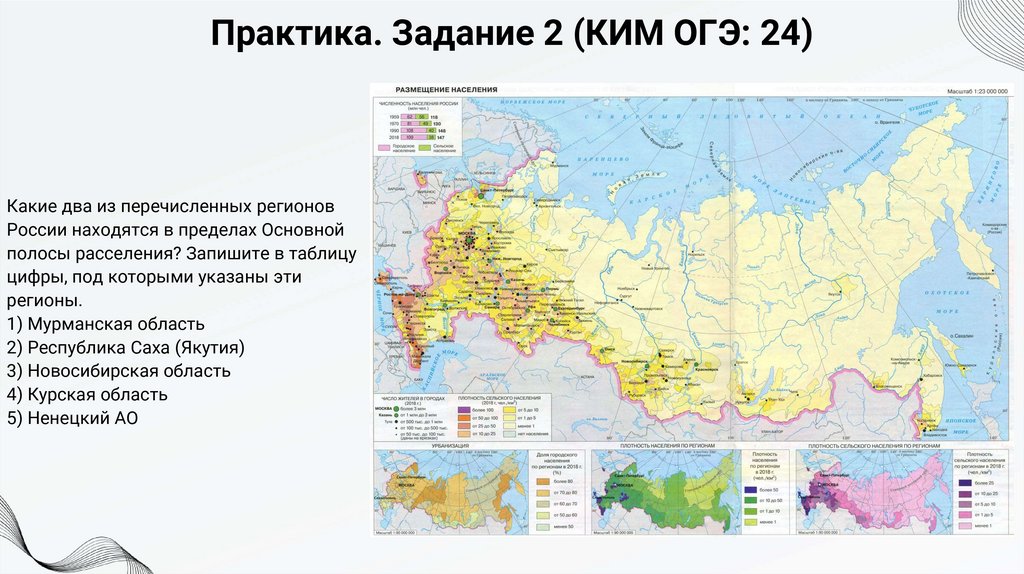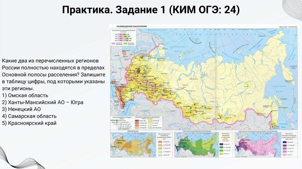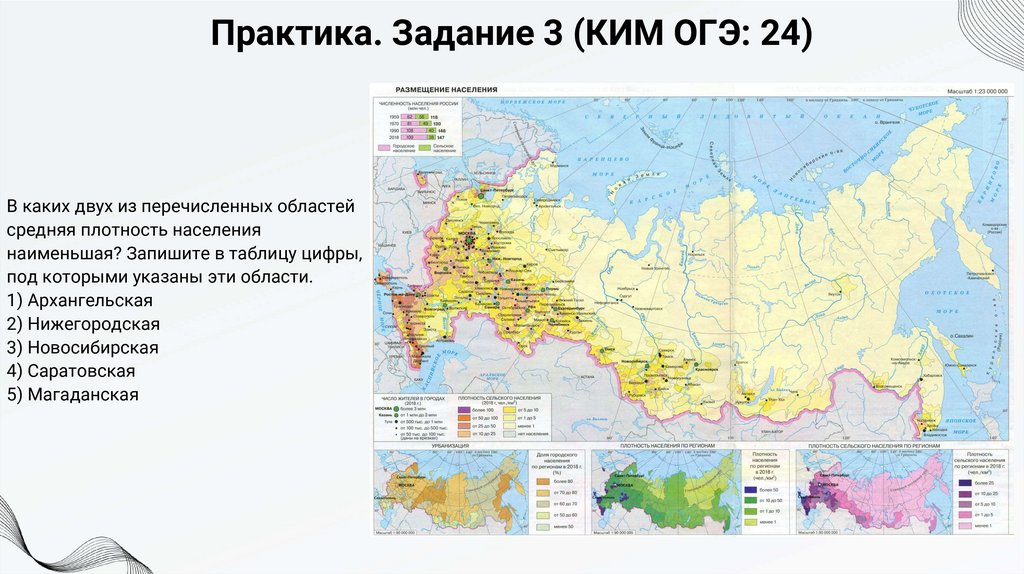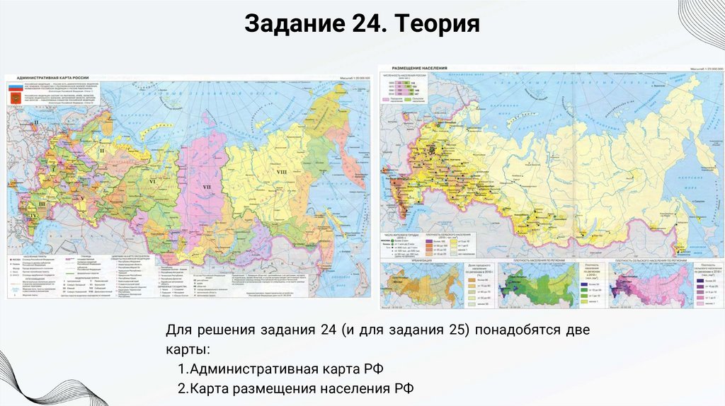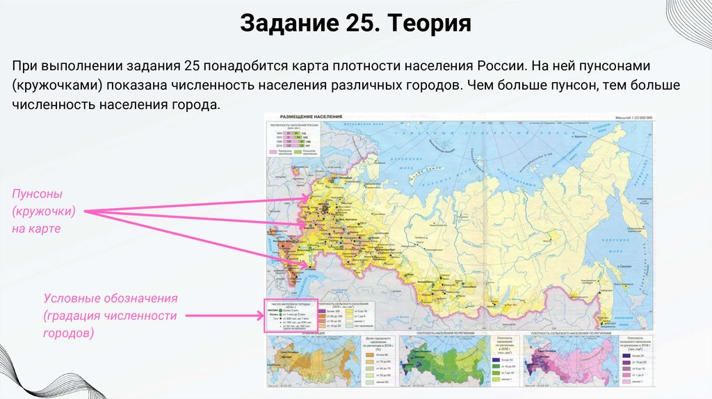 Задание 25. ТеорияПри выполнении задания 25 понадобится карта плотности населения России. На ней пунсонами