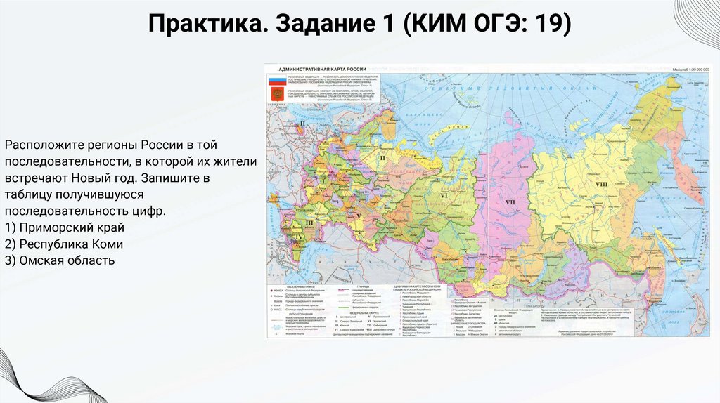 Практика. Задание 1 (КИМ ОГЭ: 19)Расположите регионы России в той