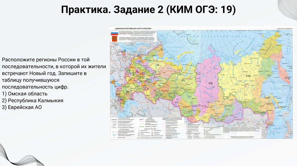 Практика. Задание 2 (КИМ ОГЭ: 19)Расположите регионы России в той