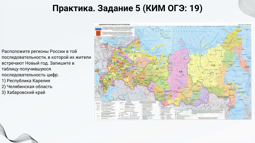 Практика. Задание 5 (КИМ ОГЭ: 19)Расположите регионы России в той