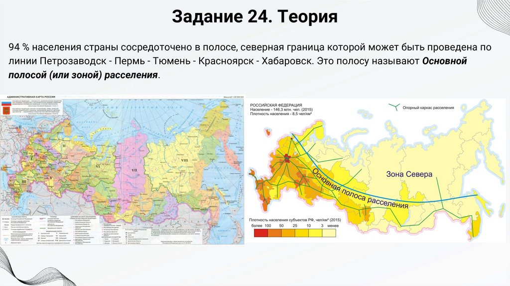 Задание 24. Теория94 % населения страны сосредоточено в полосе, северная граница которой может быть проведена по