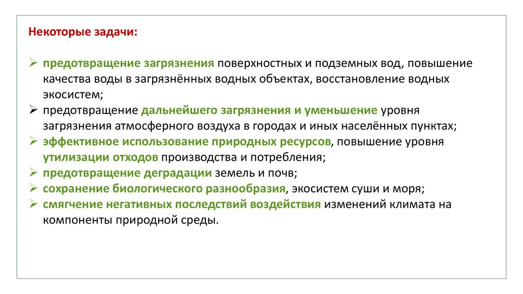 Некоторые задачи:➢ предотвращение загрязнения поверхностных и подземных вод, повышение