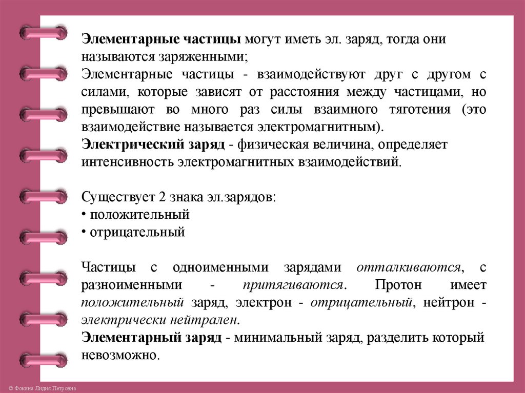 Элементарные частицы могут иметь эл. заряд, тогда ониназываются заряженными;
