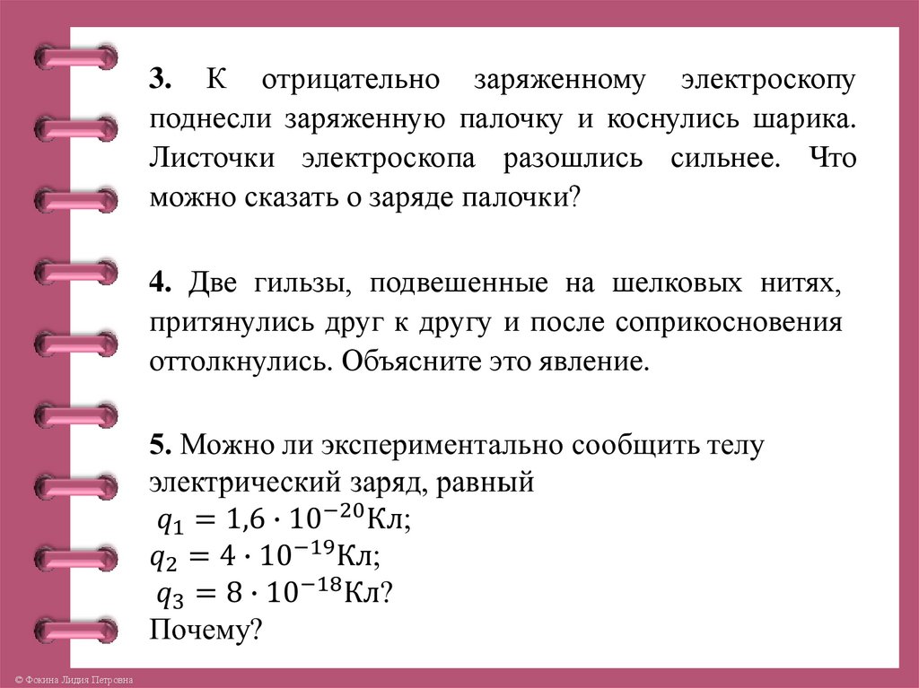3. К отрицательно заряженному электроскопуподнесли заряженную палочку и коснулись шарика.