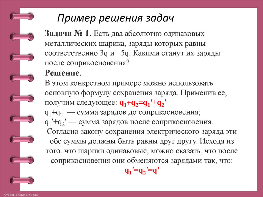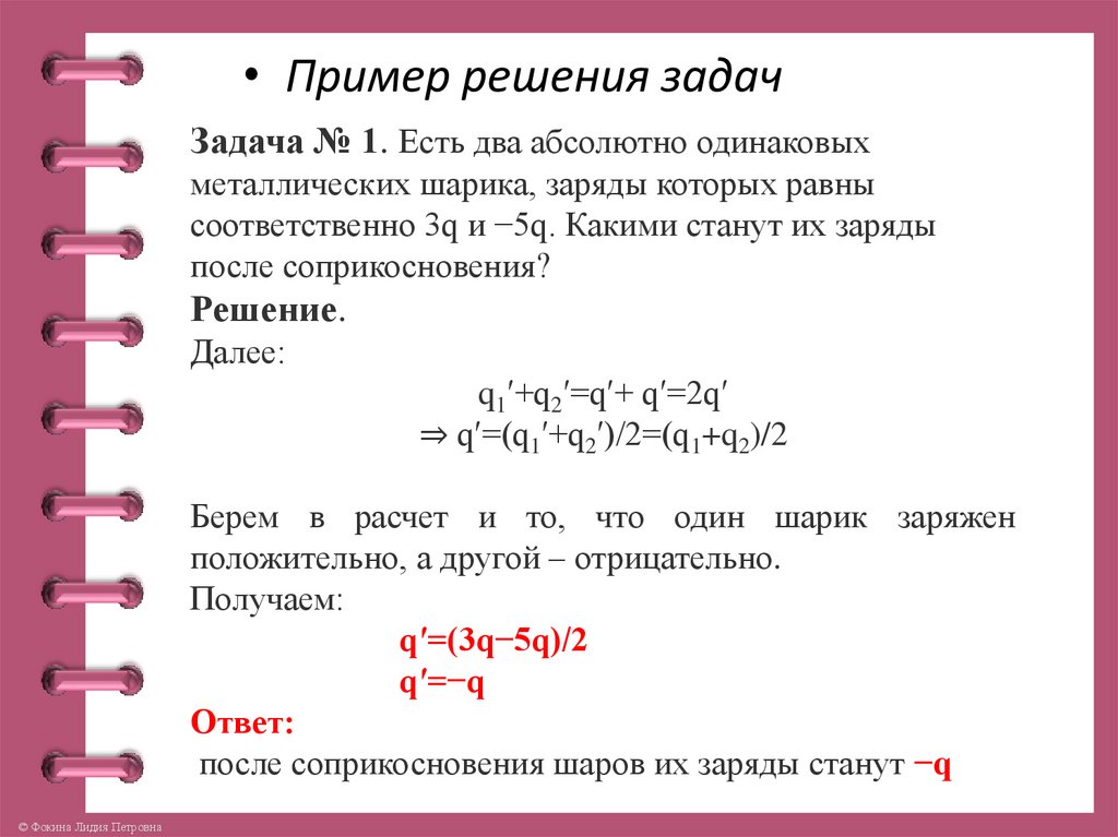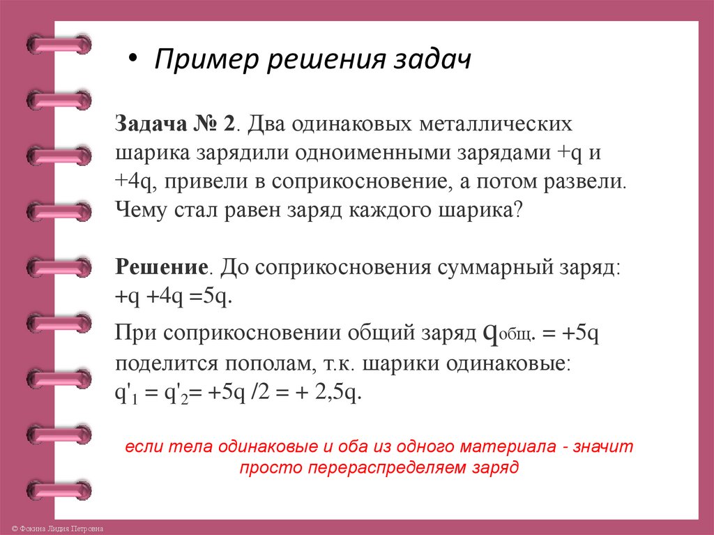 • Пример решения задачЗадача № 2. Два одинаковых металлических