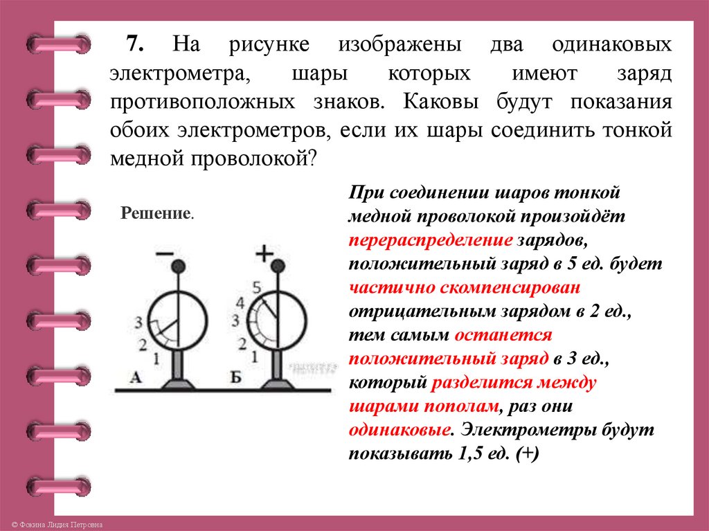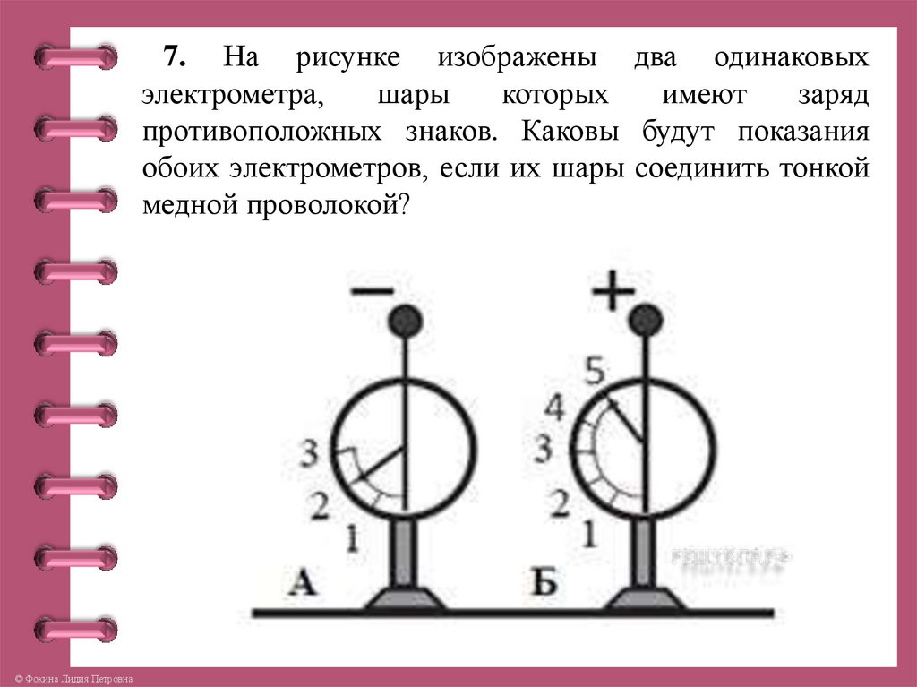 7. На рисунке изображены два одинаковыхэлектрометра,