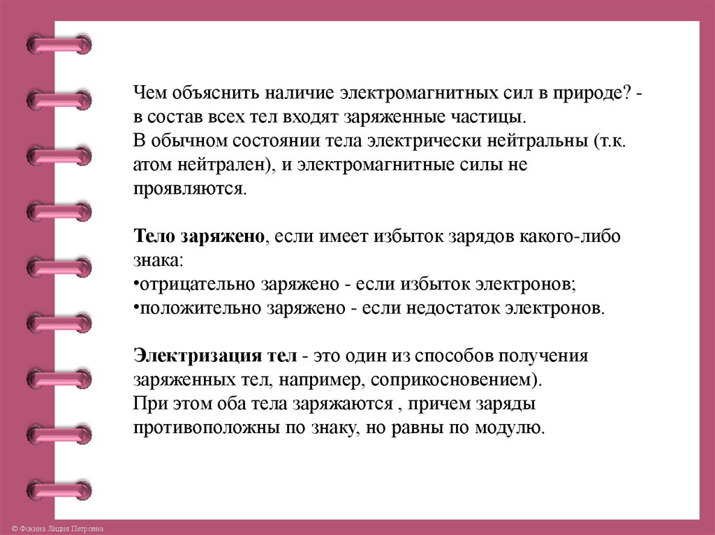 Чем объяснить наличие электромагнитных сил в природе? в состав всех тел входят заряженные частицы.В обычном состоянии тела электрически нейтральны (т.к.