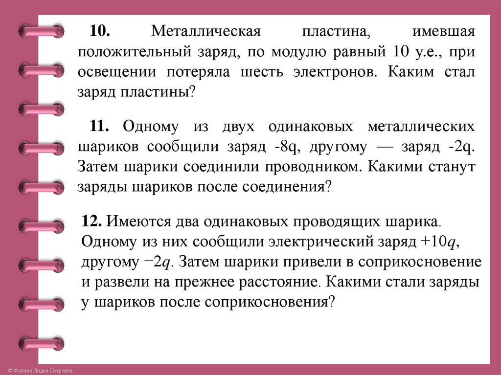 Решение задач на применение свойствэлектрических зарядов.