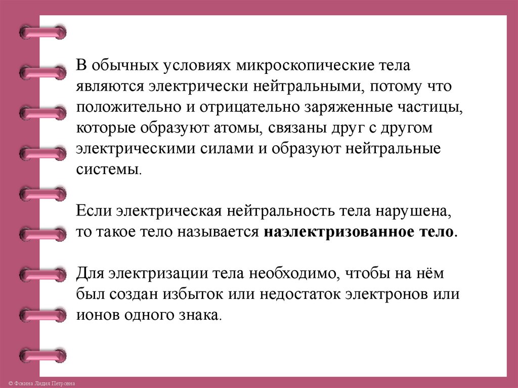 В обычных условиях микроскопические телаявляются электрически нейтральными, потому что