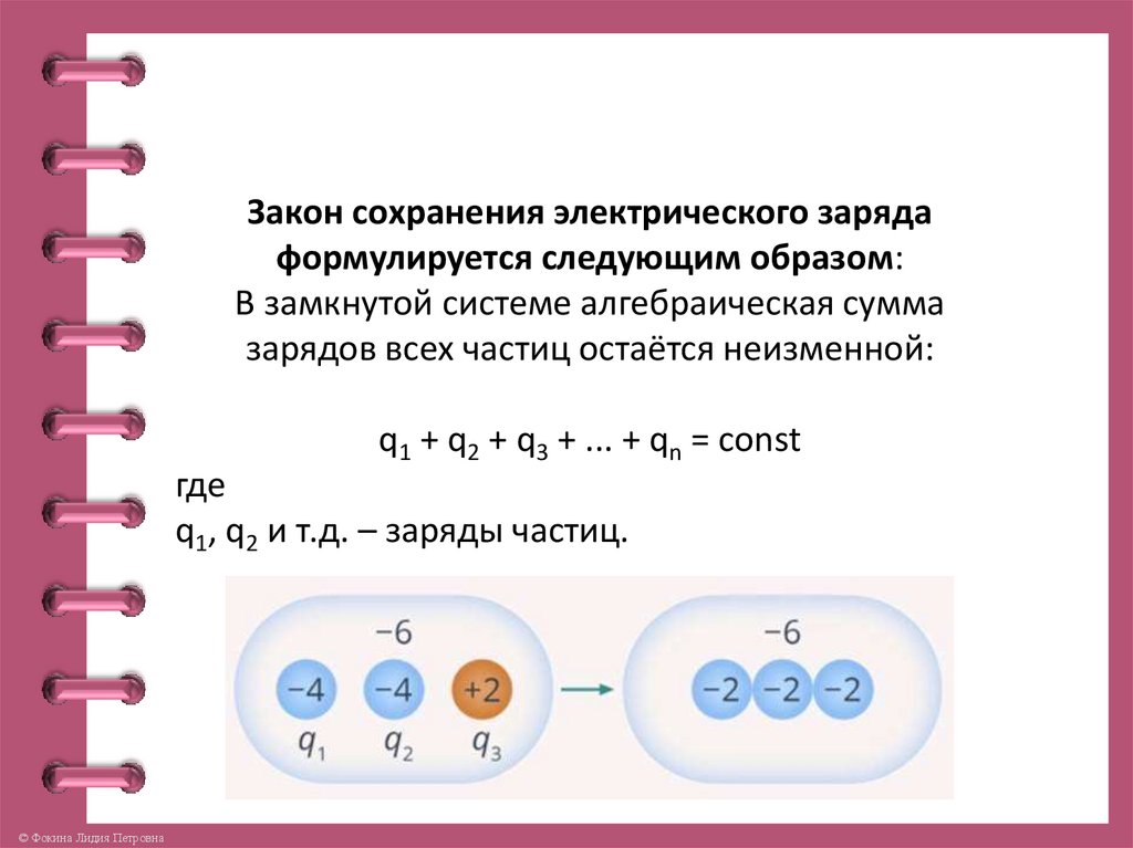 положительного заряда, выполняется закон сохранения