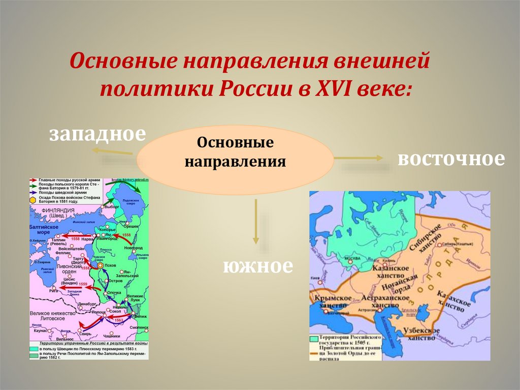 Основные направления внешнейполитики России в XVI веке: