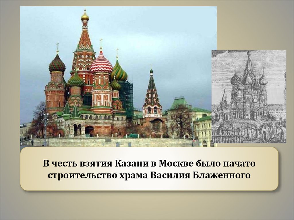 В честь взятия Казани в Москве было начатостроительство храма Василия Блаженного