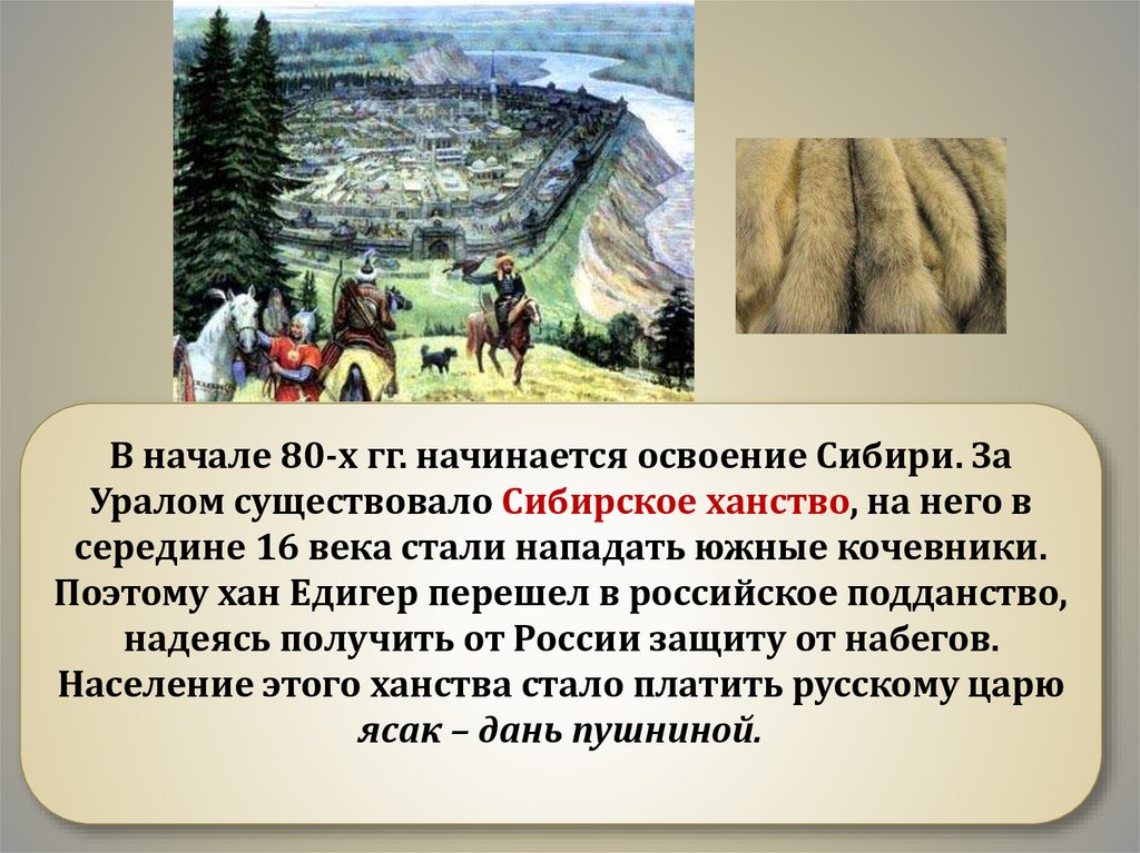 В начале 80-х гг. начинается освоение Сибири. ЗаУралом существовало Сибирское ханство, на него в