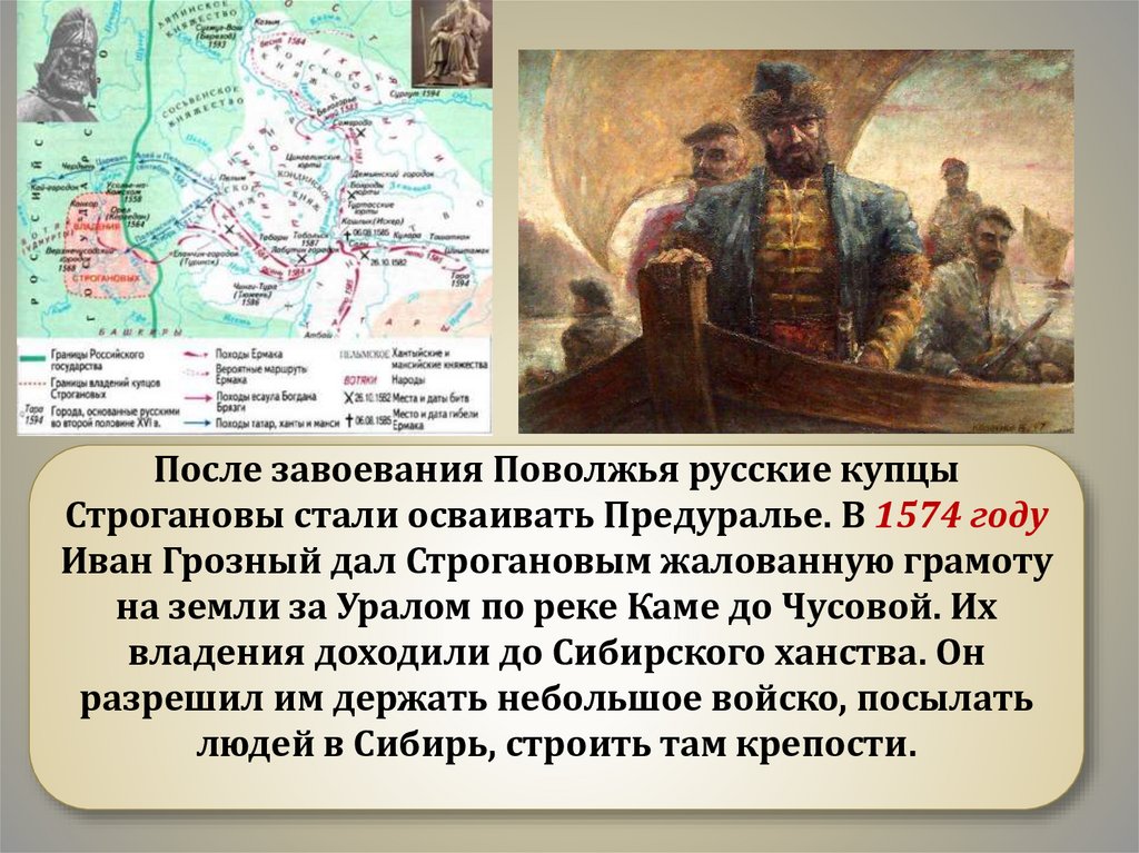 После завоевания Поволжья русские купцыСтрогановы стали осваивать Предуралье. В 1574 году