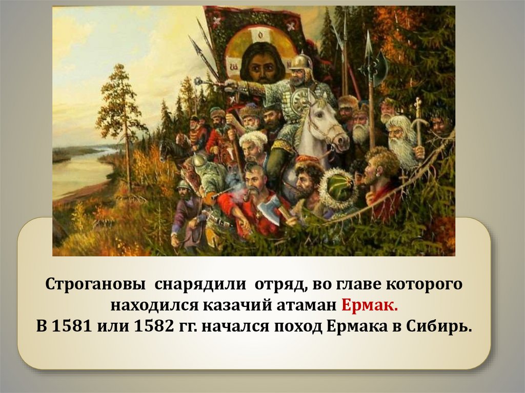 Строгановы снарядили отряд, во главе которогонаходился казачий атаман Ермак.