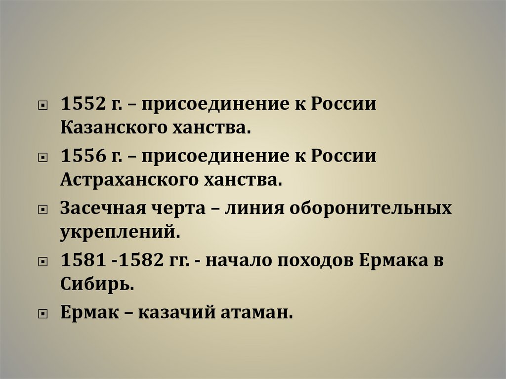 1552 г. – присоединение к РоссииКазанского ханства.