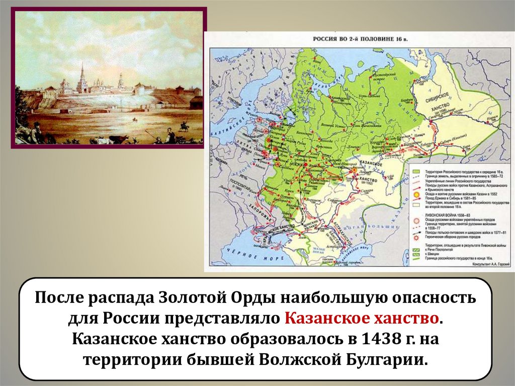 После распада Золотой Орды наибольшую опасностьдля России представляло Казанское ханство.