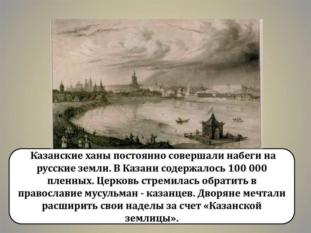 Казанские ханы постоянно совершали набеги нарусские земли. В Казани содержалось 100 000