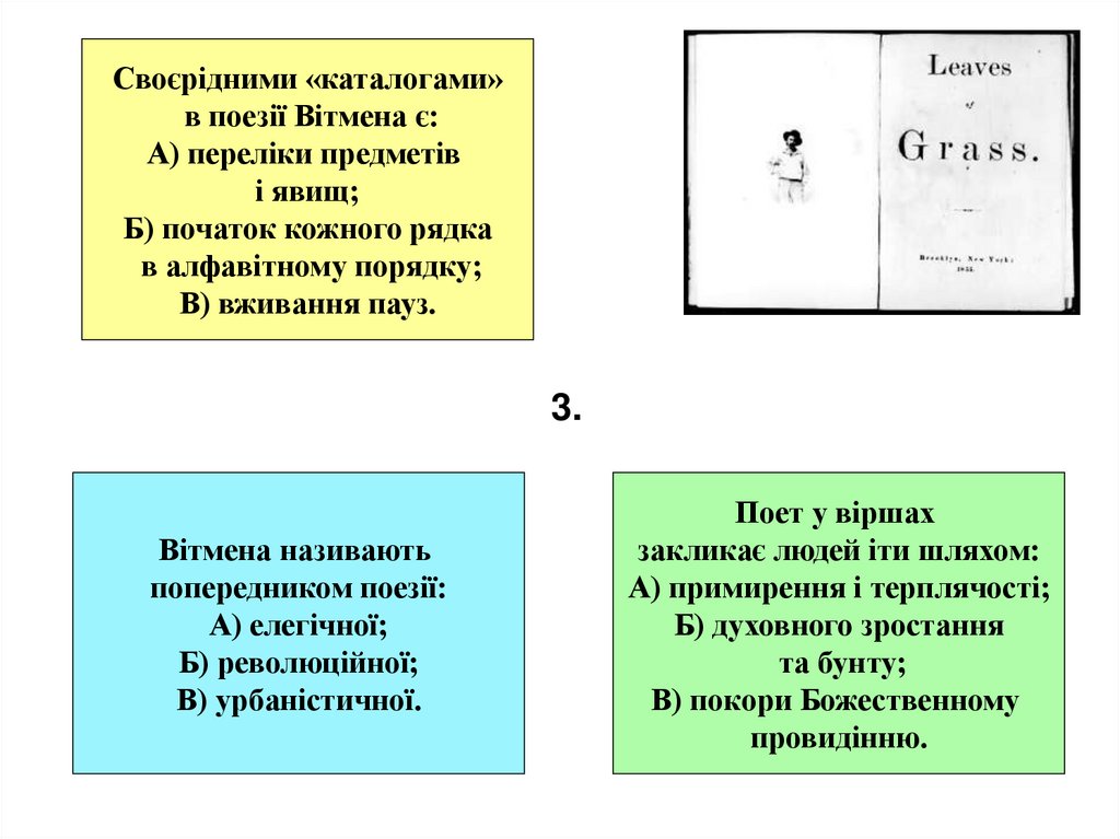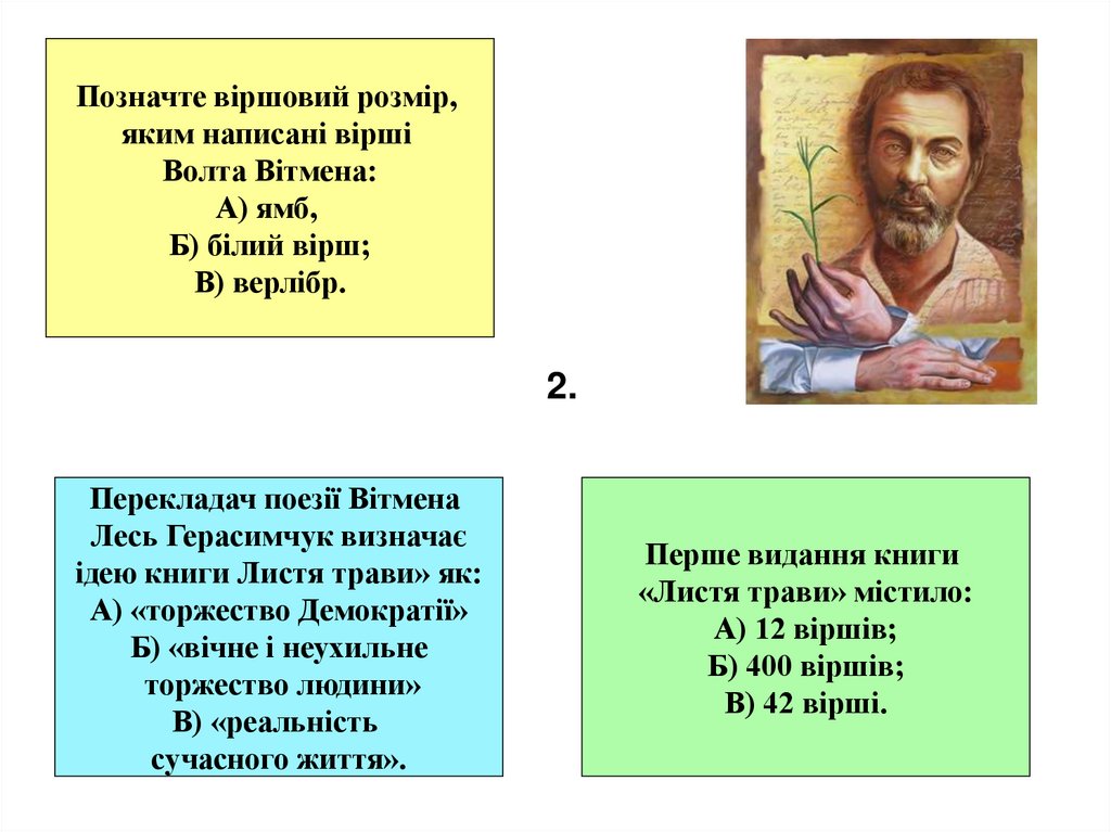 2. Скласти текст “рекламного ролика” збірки “Листя трави”