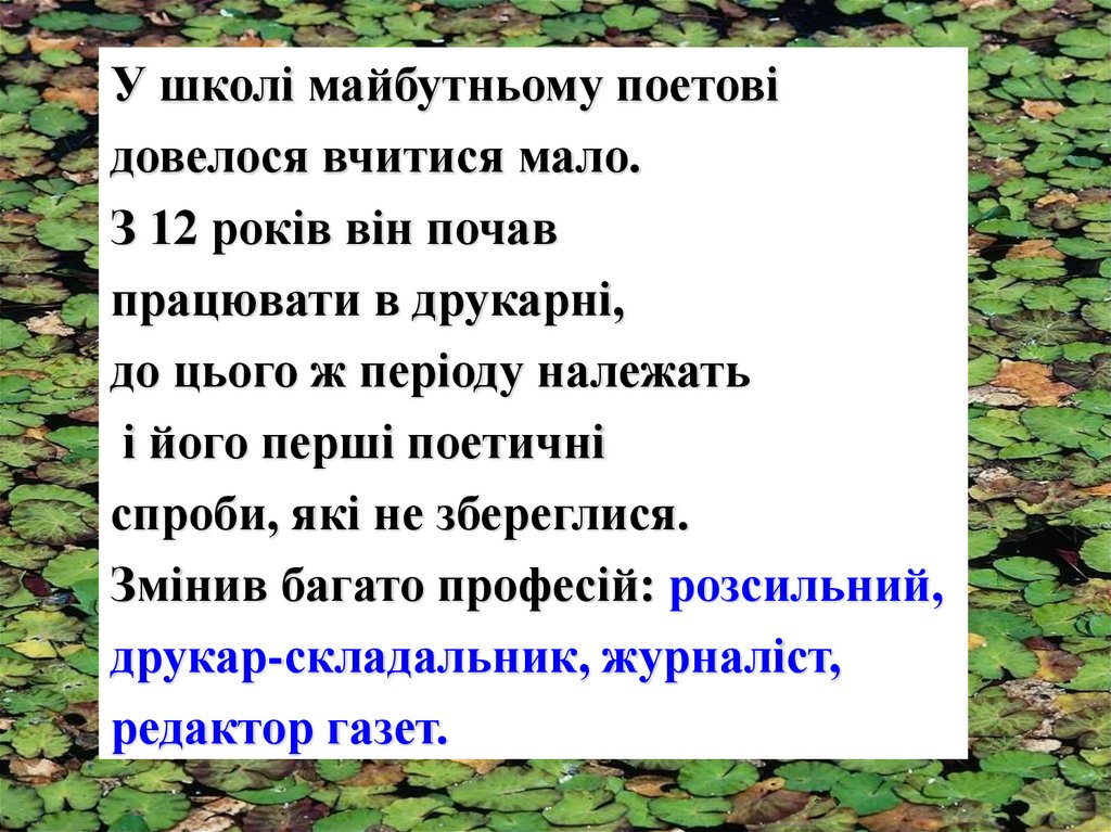 У школі майбутньому поетовідовелося вчитися мало.