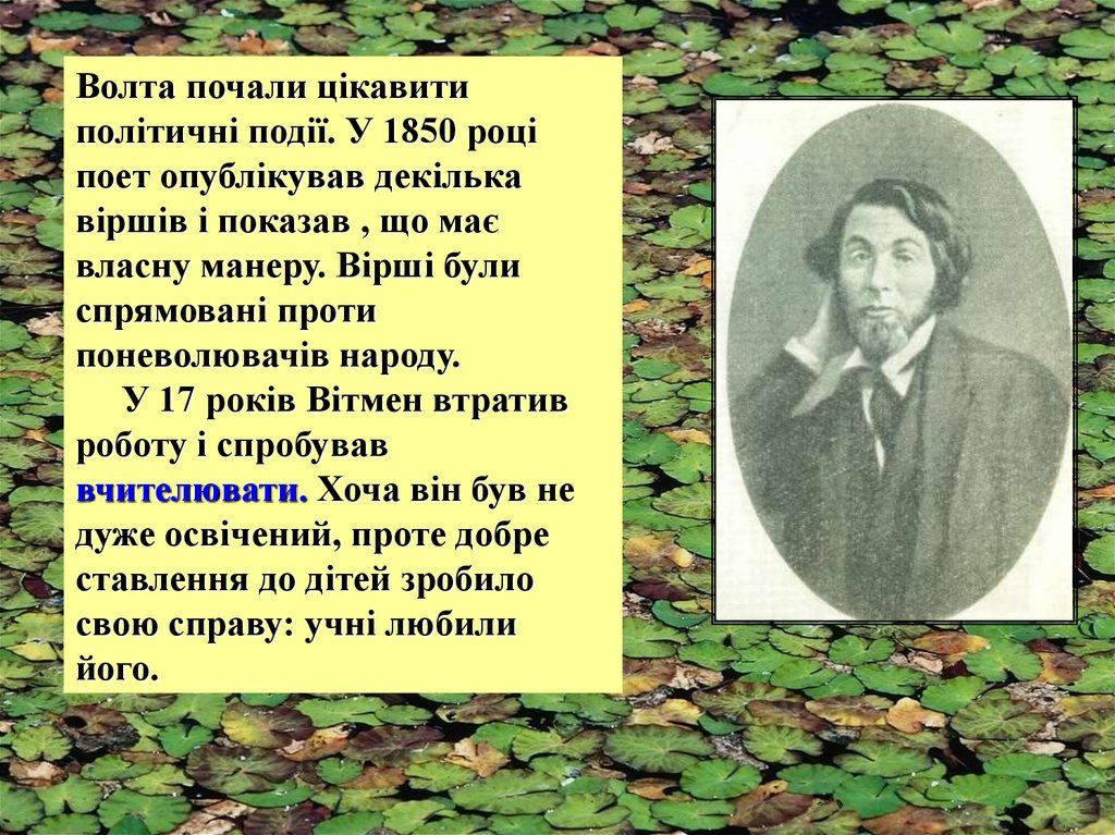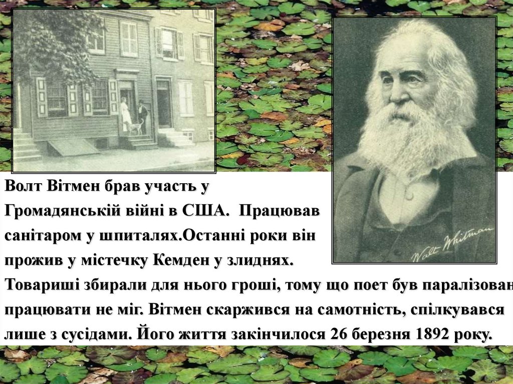 Волт Вітмен. Життєвий і творчий шлях.Історія створення збірки “Листя трави”