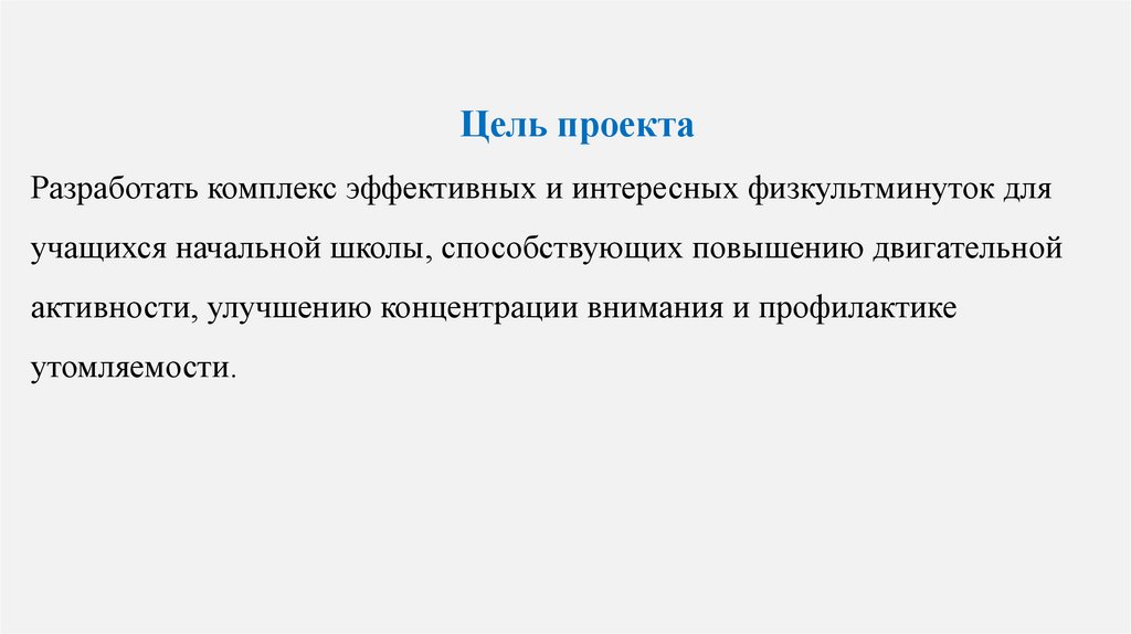Цель проектаРазработать комплекс эффективных и интересных физкультминуток для