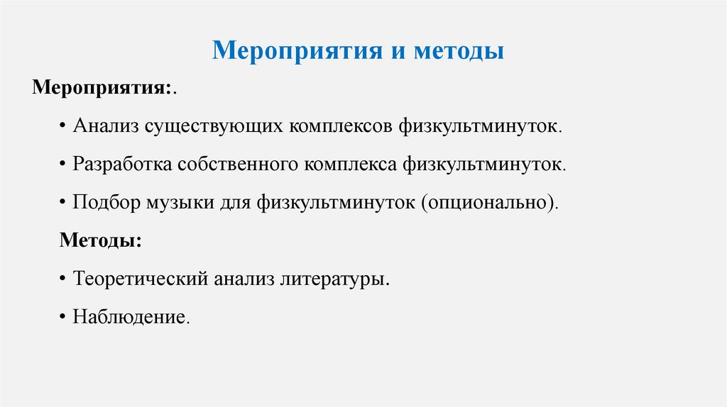 • Разработка собственного комплекса физкультминуток.