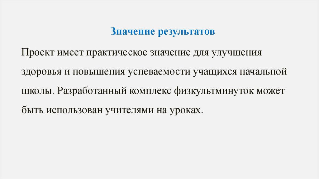 Значение результатовПроект имеет практическое значение для улучшения