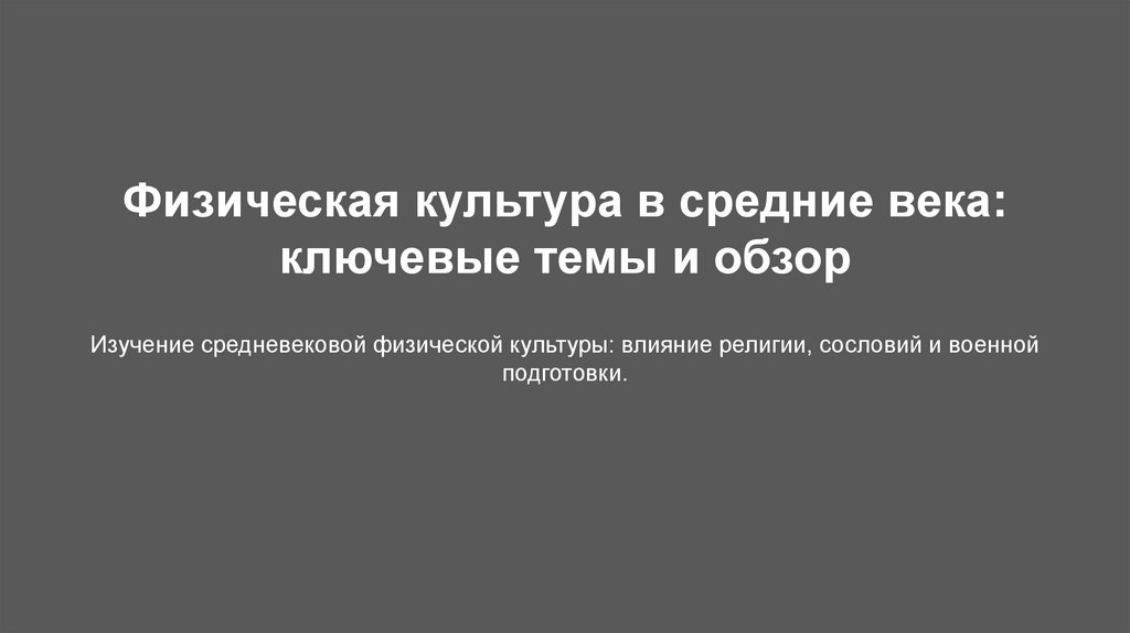 Изучение средневековой физической культуры: влияние религии, сословий и военной