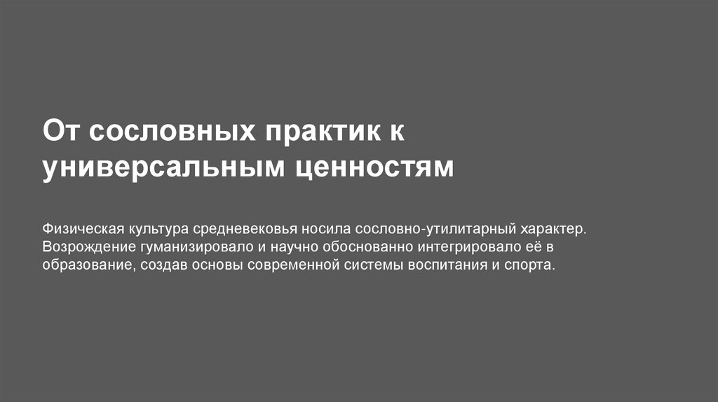 Физическая культура средневековья носила сословно-утилитарный характер.