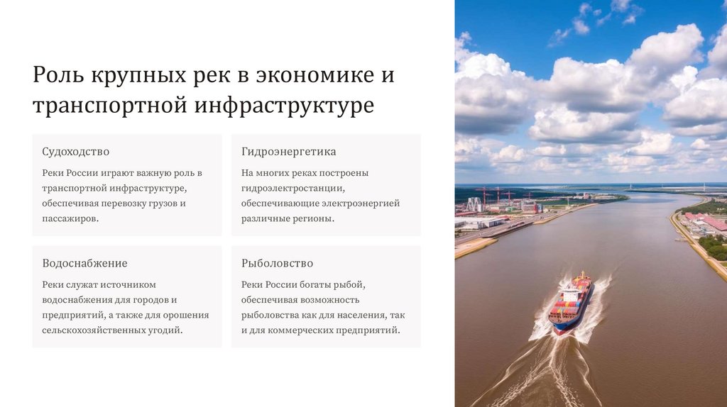 Роль крупных рек в экономике итранспортной инфраструктуре