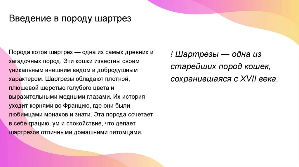 Введение в породу шартрезПорода котов шартрез — одна из самых древних и