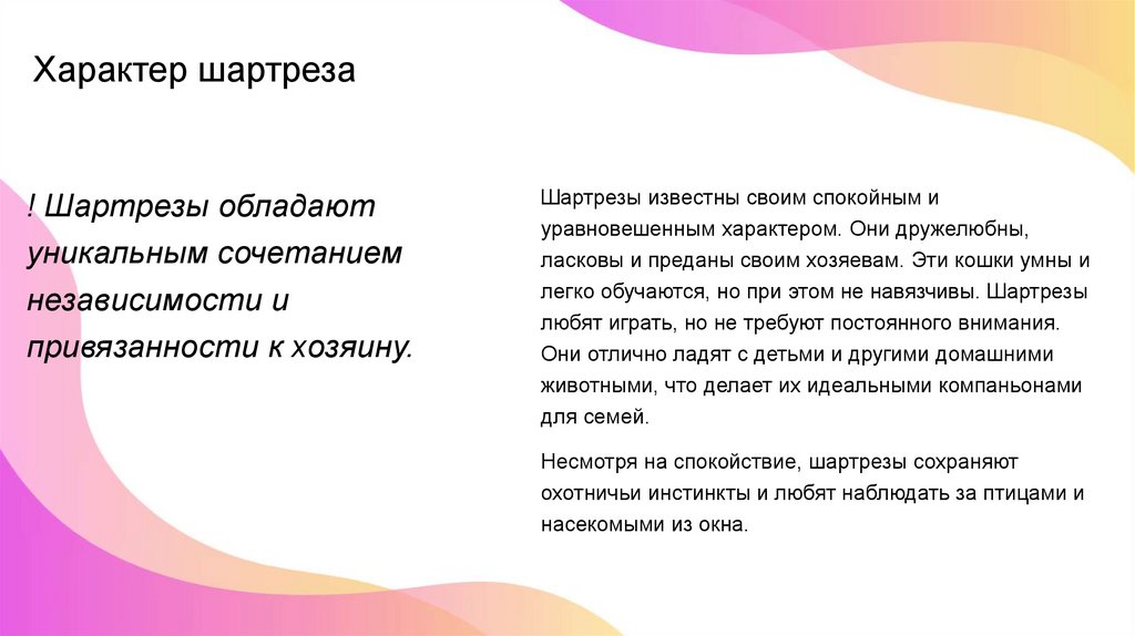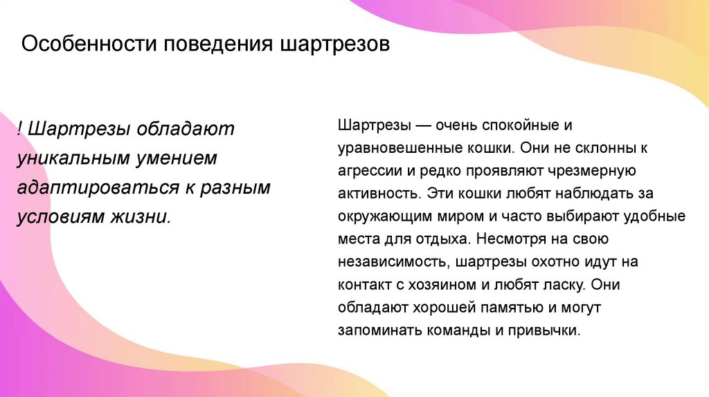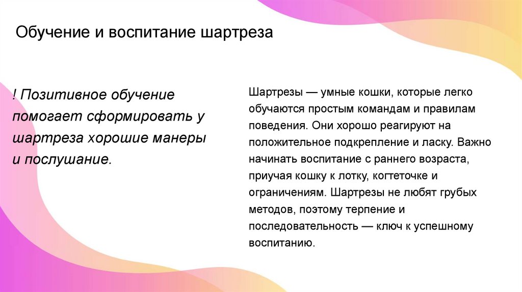 легко обучаются, но при этом не навязчивы. Шартрезы