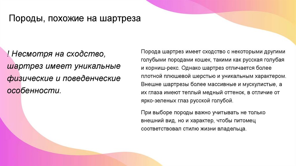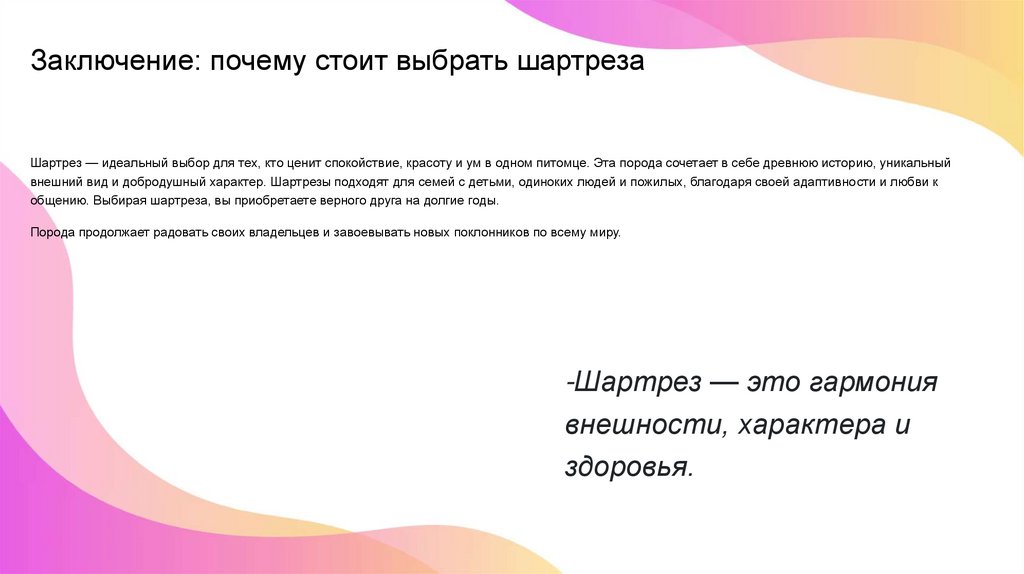 Заключение: почему стоит выбрать шартрезаШартрез — идеальный выбор для тех, кто ценит спокойствие, красоту и ум в одном питомце. Эта порода сочетает в себе древнюю историю, уникальный
