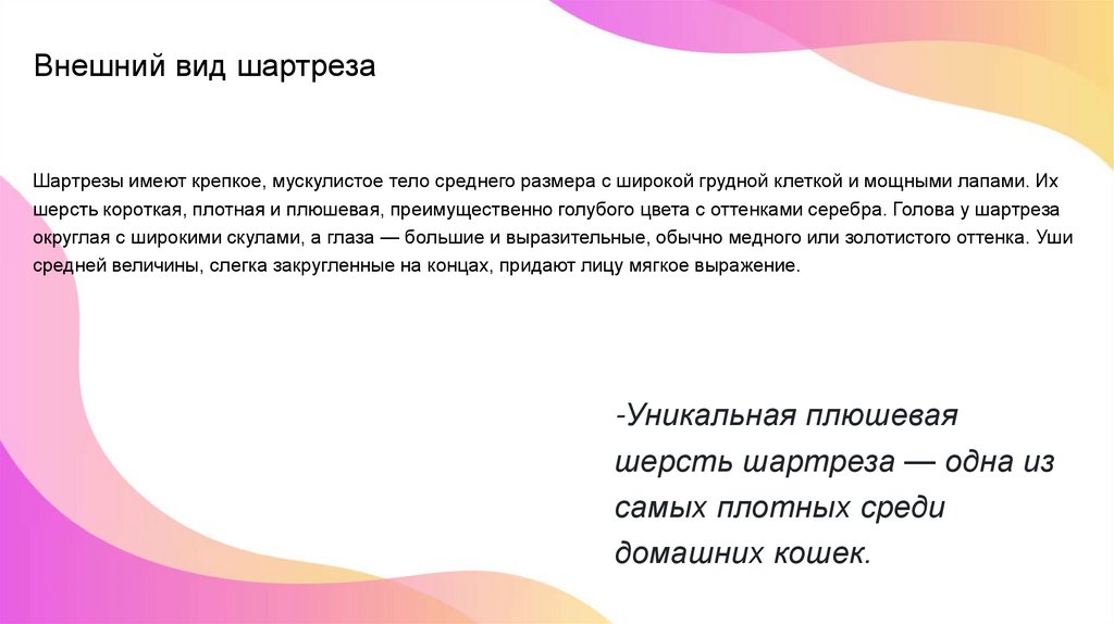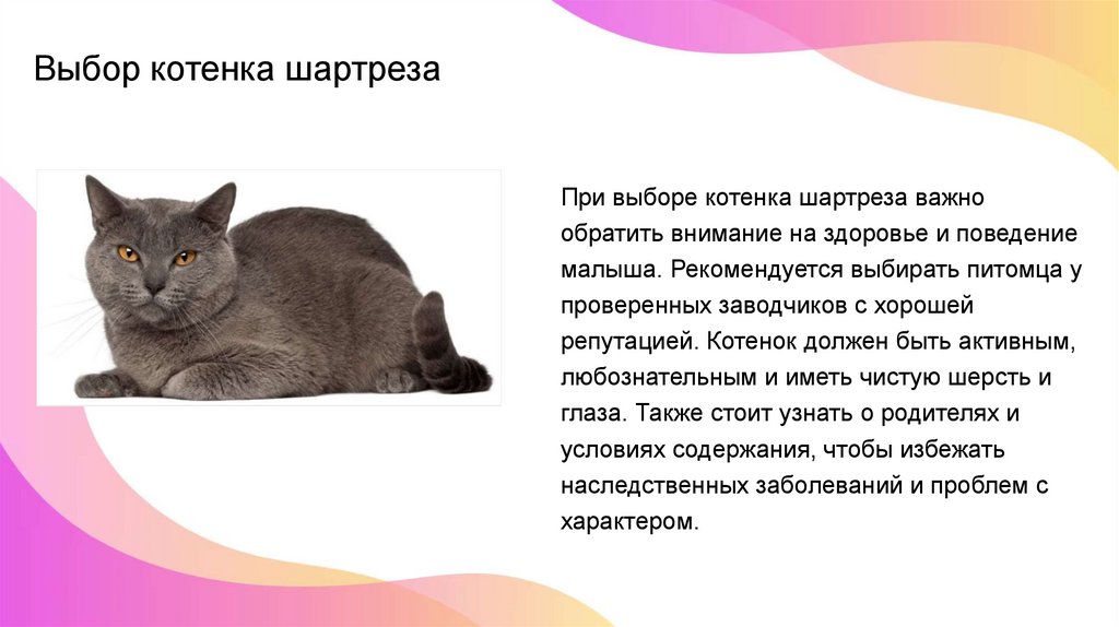 общению. Выбирая шартреза, вы приобретаете верного друга на долгие годы.