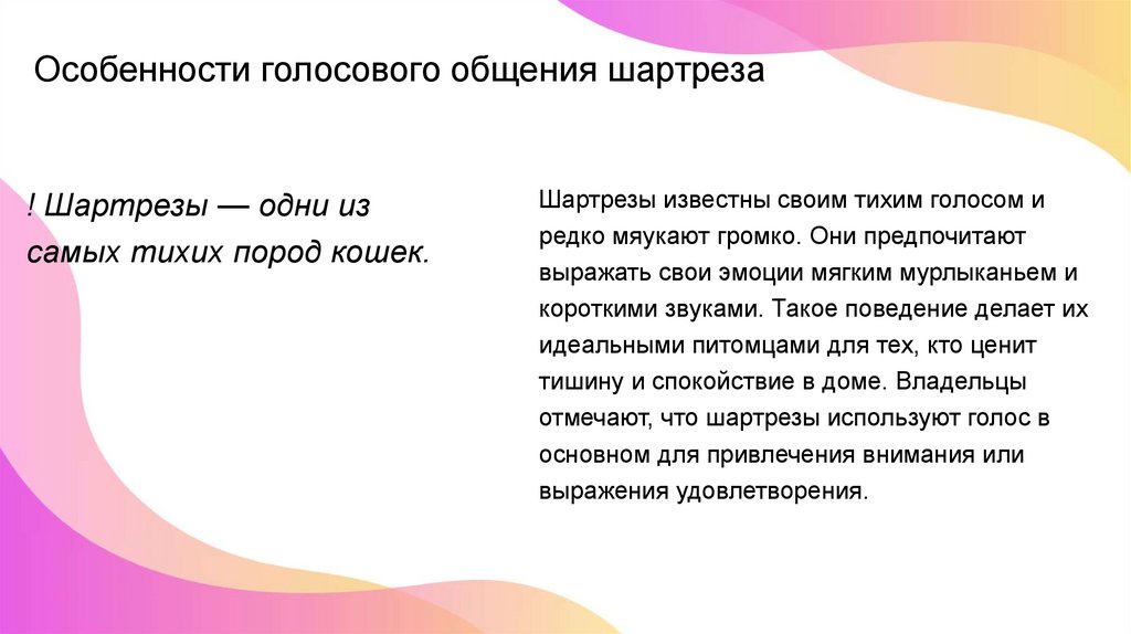 Особенности голосового общения шартреза! Шартрезы — одни из