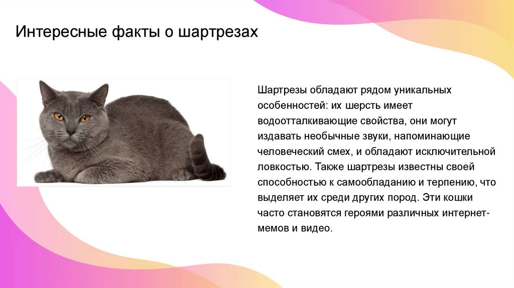 Интересные факты о шартрезахШартрезы обладают рядом уникальных