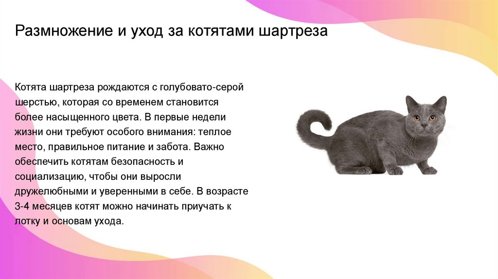Размножение и уход за котятами шартрезаКотята шартреза рождаются с голубовато-серой