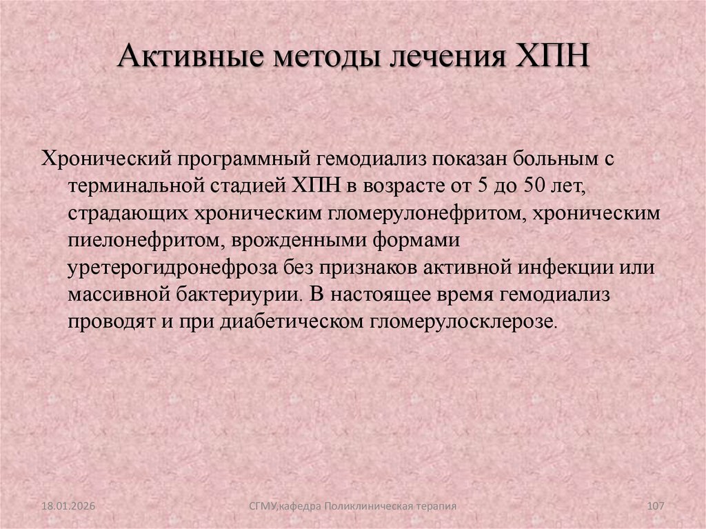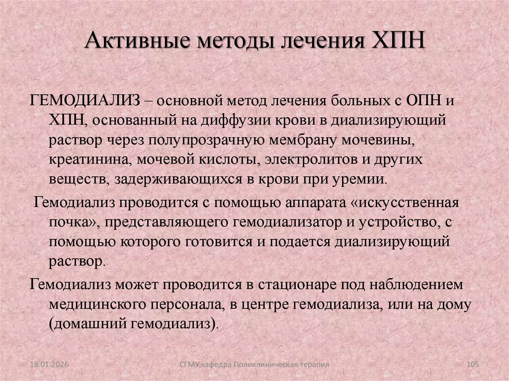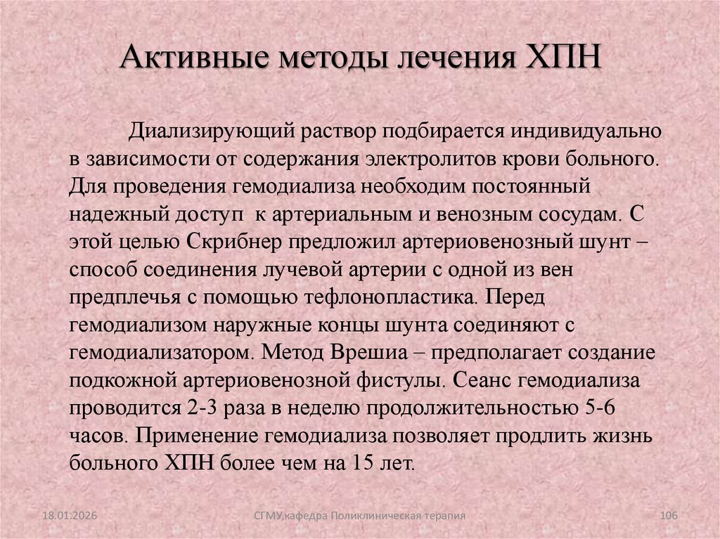 Активные методы лечения ХПНХронический программный гемодиализ показан больным с