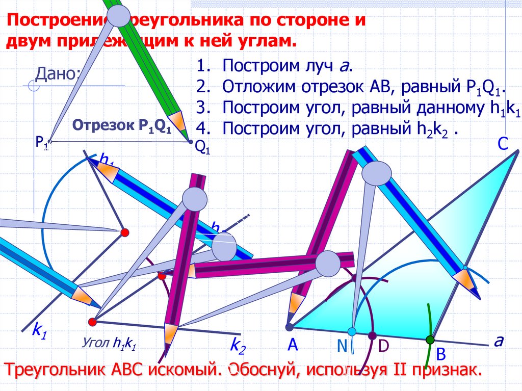 Построение треугольника по стороне идвум прилежащим к ней углам.