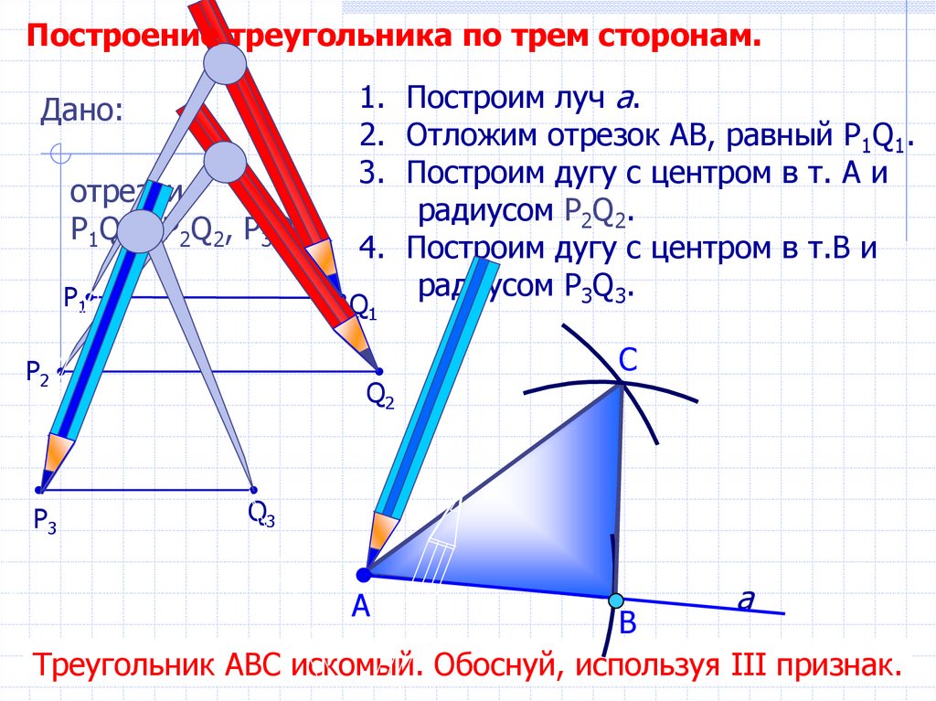Построение треугольника по трем сторонам.Дано: