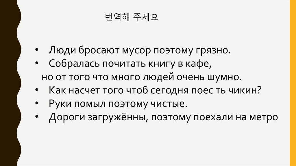 번역해 주세요• Люди бросают мусор поэтому грязно.