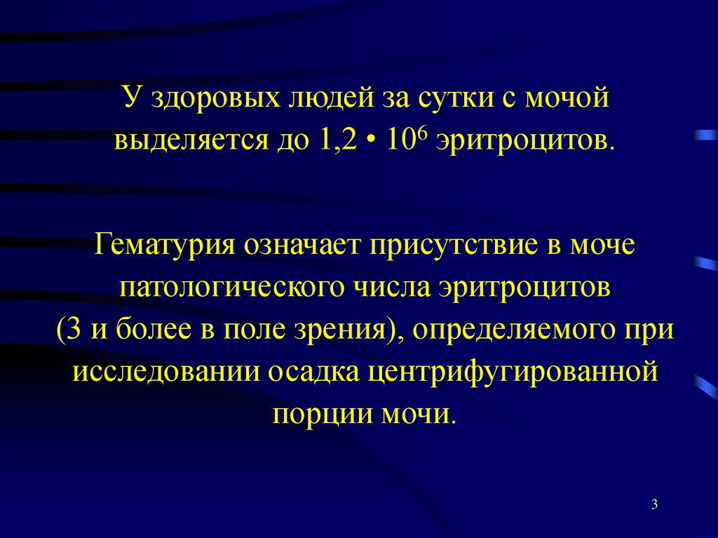 У здоровых людей за сутки с мочойвыделяется до 1,2 • 106 эритроцитов.