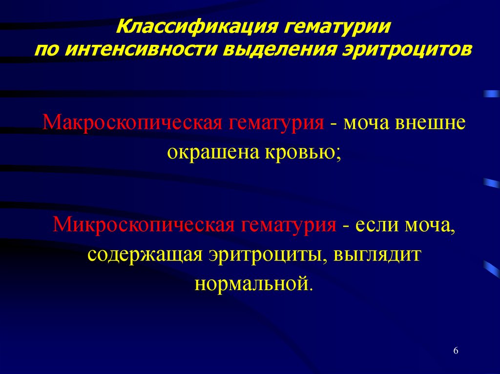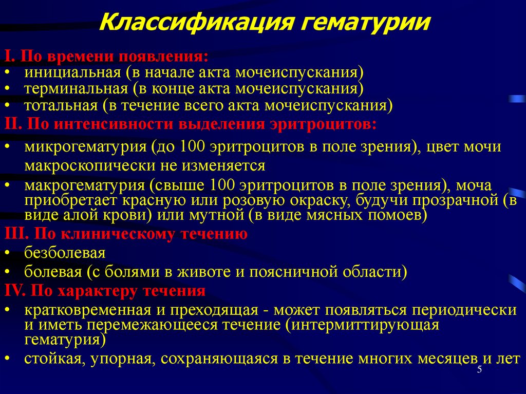 Классификация гематуриипо интенсивности выделения эритроцитов