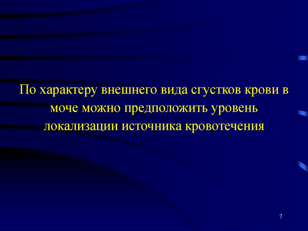 По характеру внешнего вида сгустков крови вмоче можно предположить уровень