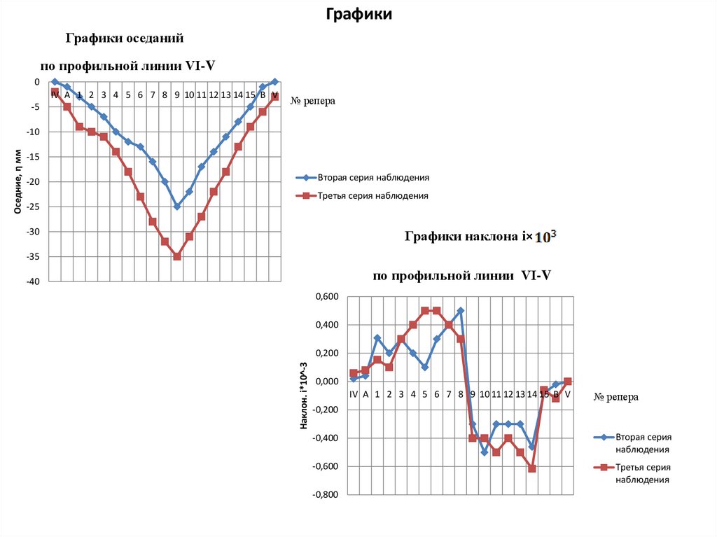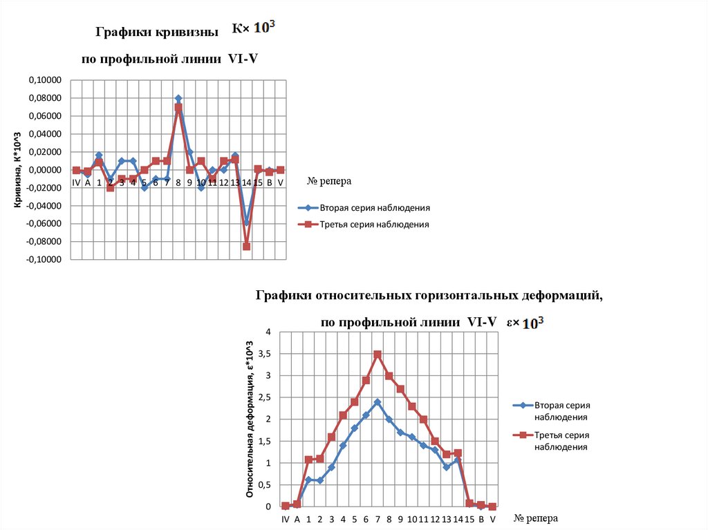 Проанализировав полученные графики можно сделать вывод о том, что на графике видно, чтомежду реперами 7 и 8 значение относительной горизонтальной деформации ε = 3,5*10^3 от предельно