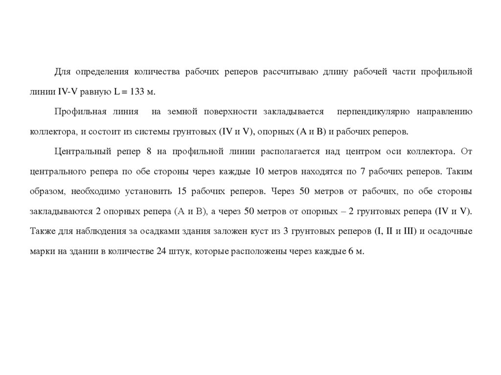 Для определения количества рабочих реперов рассчитываю длину рабочей части профильнойлинии IV-V равную L = 133 м.
