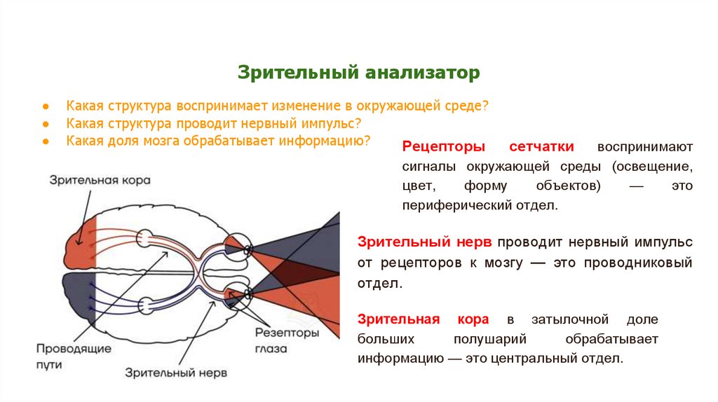 Зрительный анализаторКакая структура воспринимает изменение в окружающей среде?