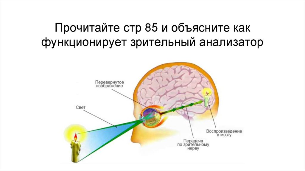 Прочитайте стр 85 и объясните какфункционирует зрительный анализатор