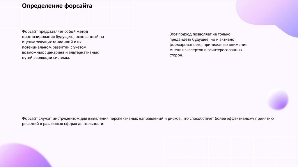 форсайта, включая его определение и методы. Мы обсудим